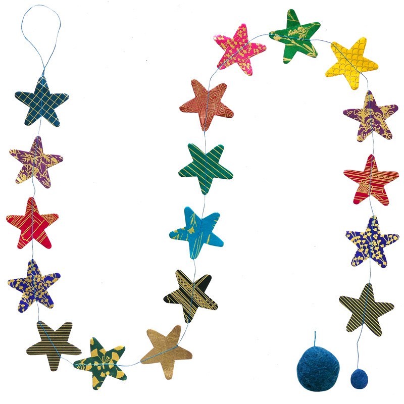 Tantra Star Garland - 1.50m approx. - Lamali Lokta paper forms printed in gold; stitched as a garland - Handmade in Nepal.