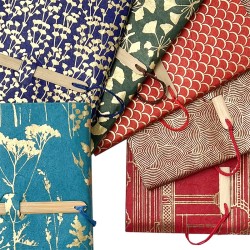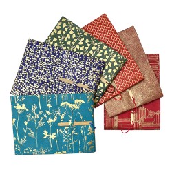 Tantra Gargi Notebook - 15x22cm approx. - 96 pages, combination of different papers inside, flexible cover in Lamali Lokta with gold patterns. Handmade in Nepal.