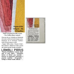 Fine Art Paper Pack A6 – 150 gsm, natural white. 10 handmade deckle-edge 100% rag paper sheets, unbleached, cold pressed. Handmade in India.