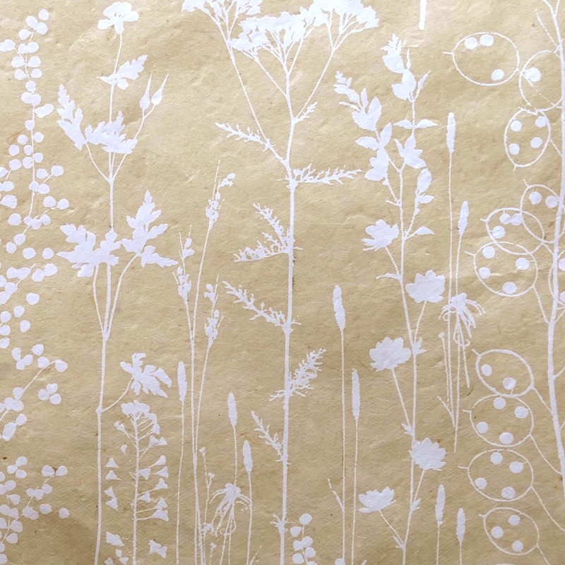 Open Meadows – 50×75 cm approx. – Lokta natural fiber paper. One-colour print. Deckled edges. Handmade in Nepal.