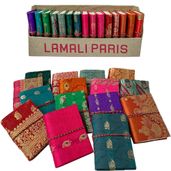 Sari Small - Journal 9x12cm approx. - 100 pages of 100% handmade cotton paper. Textile on cover. Handmade in India.