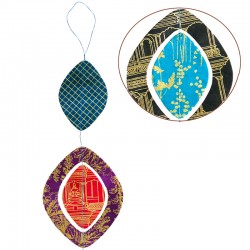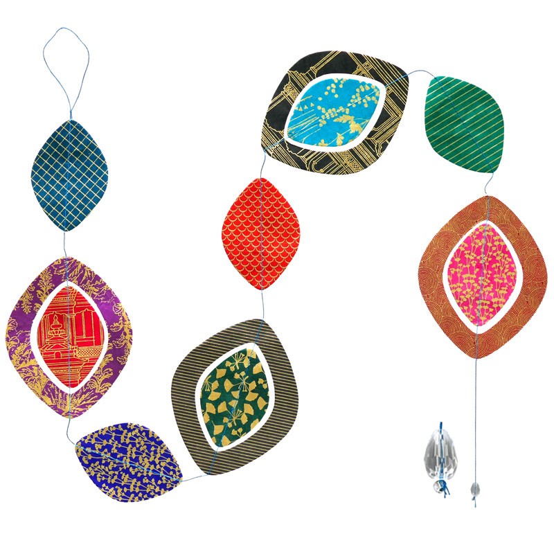 Guirlande Diamant Tantra - 1,50m env. Silhouettes cousues en papier de fibres naturelles de Lokta imprimé or. Fait main au Népal.