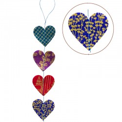 Guirlande Cœurs Tantra - 1,50m env. Silhouettes cousues en papier de fibres naturelles de Lokta imprimé or. Fait main au Népal.