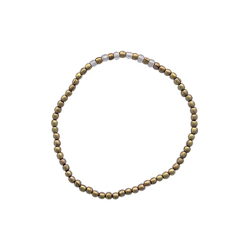 Bracelet Ifé Couleur Elastique - 8,5cm env. 1 rang de mini-perles de laiton (dia. 2mm env.) et de verre coloré. Fait main au Népal.