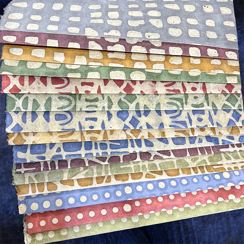 Façonnés, teints et imprimés à la main, nos papiers de Lokta sont fabriqués au Népal à partir de l’écorce d’un arbuste local, sauvage et renouvelable. Nos motifs originaux et nos collections prennent vie dans des ateliers partenaires, selon les principes du commerce équitable, qui allient qualité artisanale et respect des personnes et de l’environnement.