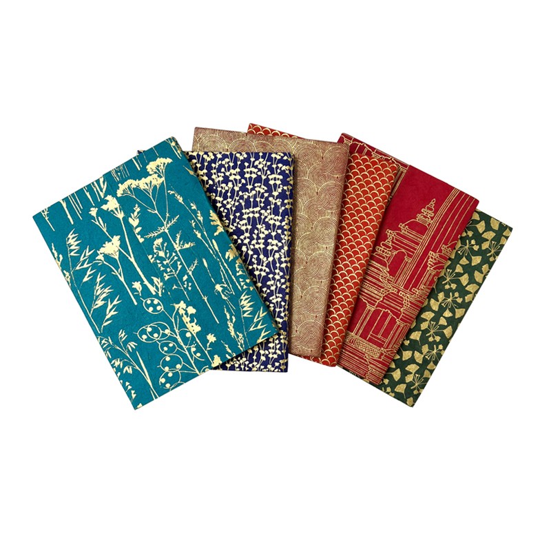 Carnet BondoTantra Grand - 15x21cm env. 132 pages de différents types de papiers, couv. souple en papier Lokta imprimé. Fait main au Népal.