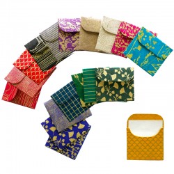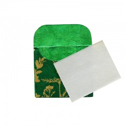 Mini-Enveloppe Tantra– 6x7cm env. Papier de fibres naturelles de Lokta sérigraphié et feuillet de papier industriel blanc. Fait à la main au Népal.