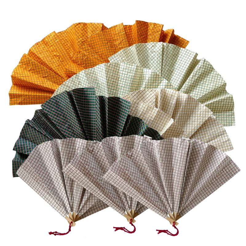 Avec les lignes doucement toniques et les couleurs affirmées du papier de Lokta, la structure légère en bambou et le cordon torsadé en fils de couleur, les éventails Carmen nous rappellent qu’il fait toujours chaud quelque part.