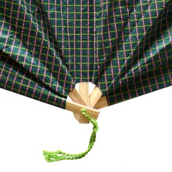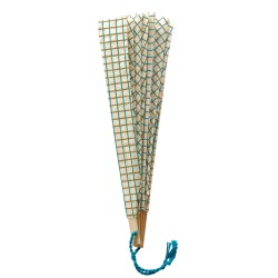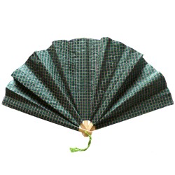 Eventail Carmen Sarabhai - Papier de fibres naturelles de Lokta sérigraphié 2 couleurs, fil de couleur et bambou. Fait main au Népal