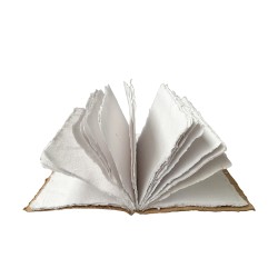 Ce carnet est entièrement façonné à la main en papier 100 % chiffon, apprécié pour sa résistance, sa douceur et sa dimension écologique. Chaque page révèle une texture authentique, propice à l’écriture et à la création.