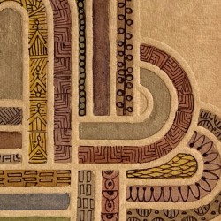 *– Art populaire indien aux formes géométriques et symboliques, le Mandana est traditionnellement lié à la protection du foyer ; celui-ci évoque le chemin de la vie et la circulation de l’énergie cosmique