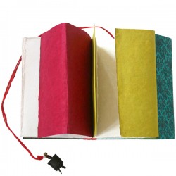 Carnet de voyage Pèlerin - 272 pages de différents types de papiers, couverture souple en Lamali Lokta, lien rouge en soie et amulette en cuir - taille : approx. 16x21cm - fait main au Népal