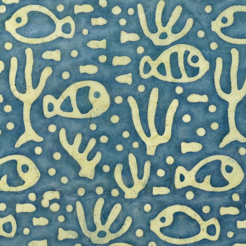 Grands-fonds - Batik Classique - Feuille 50x75cm env. Papier de fibres naturelles de Lokta fin, bords frangés - impression tampon de bois & travail de batik. Fait main au Népal.